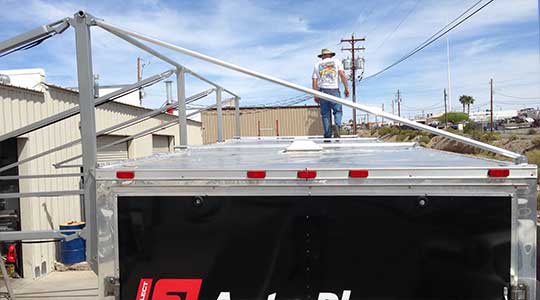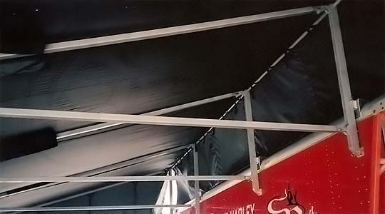 The Rise Above style frame lets standard height or smaller trailers have the same benefits of a full height trailer. Double bracket uprights are attached to the wall for strength and easy assembly, roof braces are available as an option for increased strength.