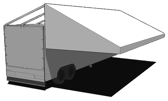 These extensions are designed to let the awning continue beyond the trailer. Extensions are available for either end of trailer and can be combined with all awnings styles. Regardless of size of awning they are supported with legs.